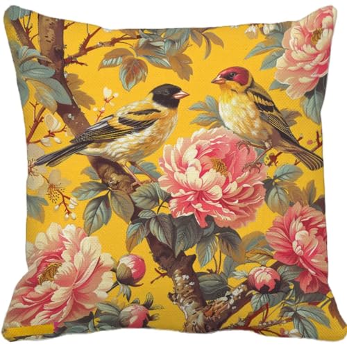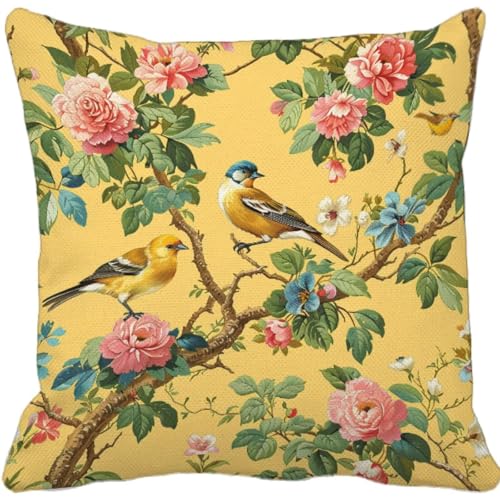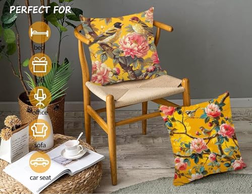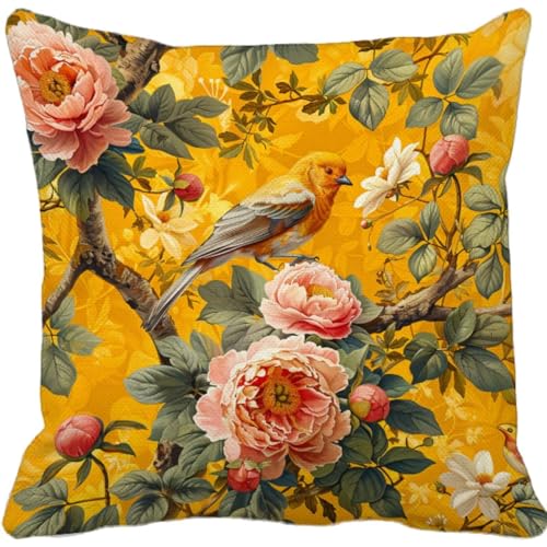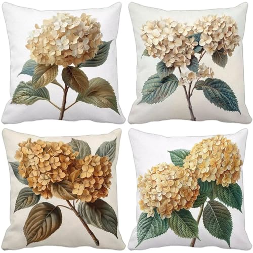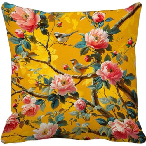 Blumen Outdoor Kissen 80×80 4er Set Kissenbezug Gelb Dekokissen, Leinen Outdoor Kissen Wetterfest für Sofa Schlafzimmer Wohnzimmer Garten Bauernhaus Frühling Zierkissenbezug kuschelkissen -XZ2505K3