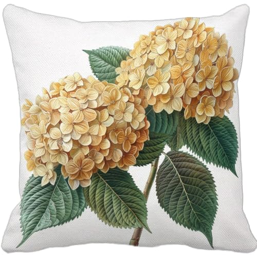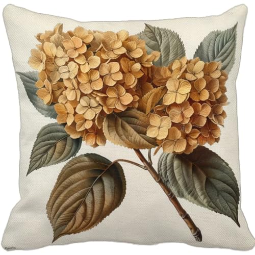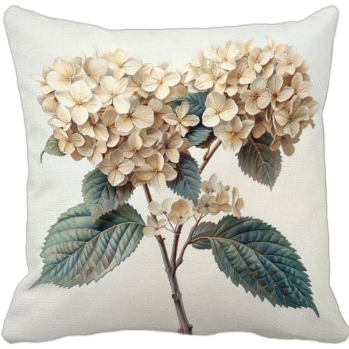 Blumen Outdoor Kissen 80×80 cm 4er Set Kissenbezug Beige Dekokissen, Leinen Outdoor Kissen Wetterfest für Sofa Stuhl Schlafzimmer Wohnzimmer Garten Bauernhaus Frühling Zierkissenbezug -XZ2505F5
