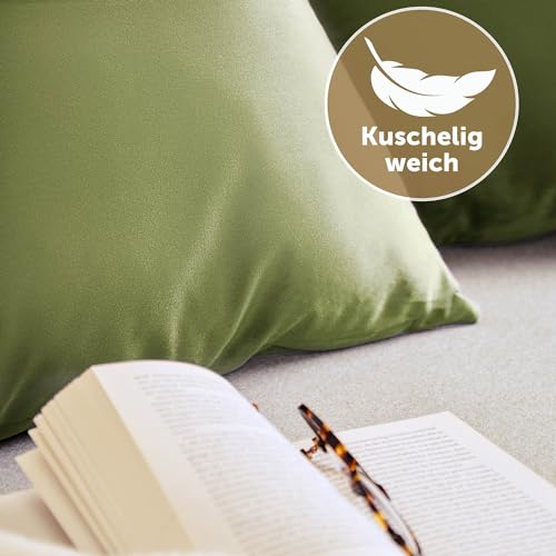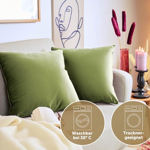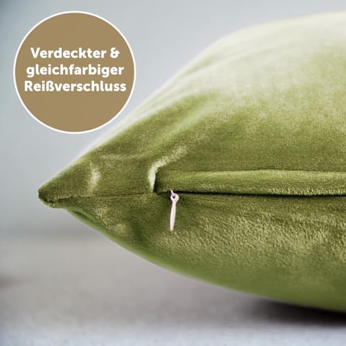 Blumtal 2er Set Kissenbezug 40×40 cm Grün – dekorativer Samt Kissenbezug mit verstecktem Reißverschluss, Kissenhülle für Zierkissen Deko-Kissen Polster Sofakissen & Couchkissen, waschbar