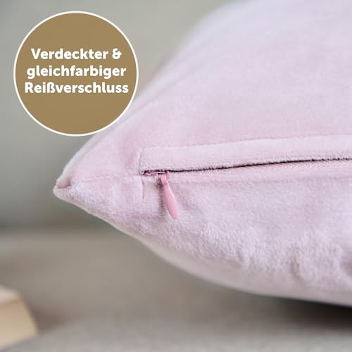 Blumtal 2er Set Kissenbezug 50×50 cm Rosa – dekorativer Samt Kissenbezug mit verstecktem Reißverschluss, Kissenhülle für Zierkissen Deko-Kissen Polster Sofakissen & Couchkissen, waschbar