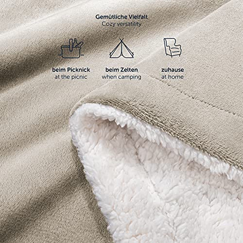 Ideal für behagliche Fernseh- oder Leseabende auf dem Sofa als Tagesdecke oder Sofaüberwurf Decke. Außerdem können Sie die flauschige Decke schnell zusammenpacken und abstauben. Zum Picknick im Park oder zum Open-Air-Konzert – Die Sherpa Decke ist der perfekte Begleiter.