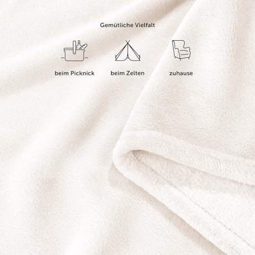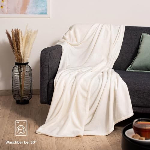 Blumtal Fleecedecke, 150 x 200 cm, weiß, Oeko-TEX®-Zertifiziert, Sofadecke, Cocooning – Fleecedecke dick, flauschig, weich und warm – hohe Qualität