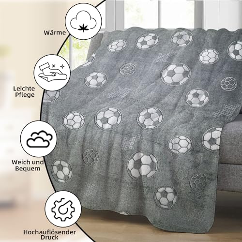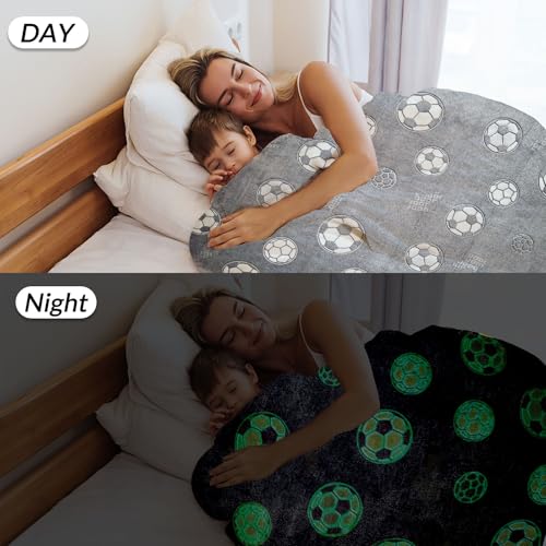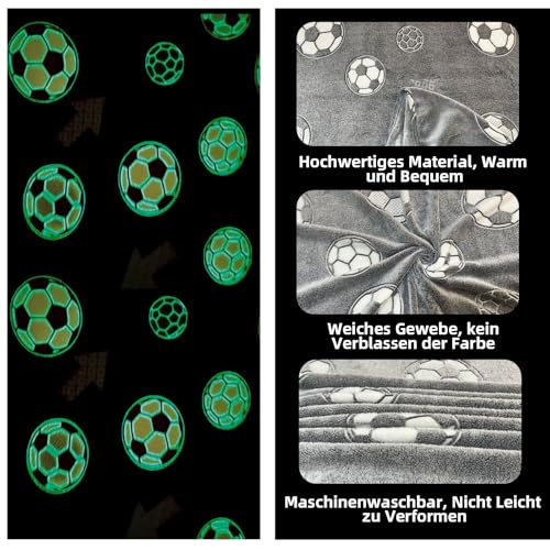 BNREDA Kuscheldecke Leuchtet im Dunkeln 150x200cm, Fußball Druck Decke Leuchtet im Dunkeln, Flauschig weiche Sofadecke für Mädchen und Jungen (A, 150x200cm)