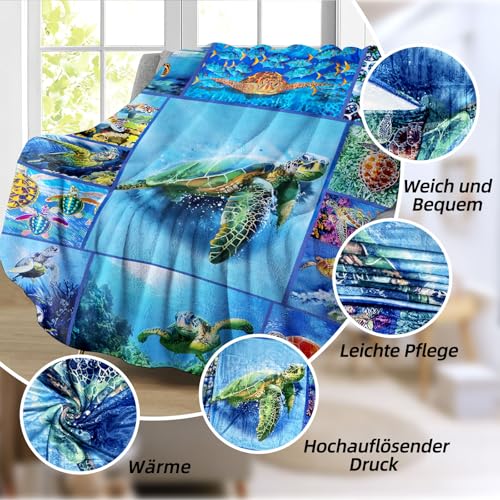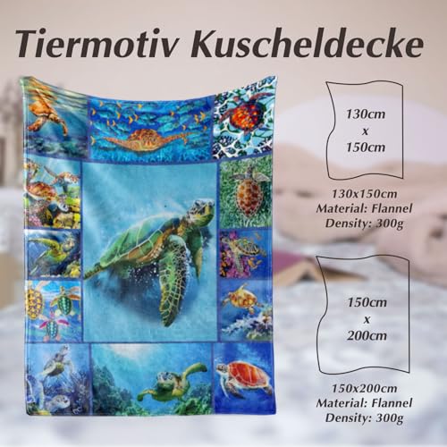 BNREDA kuscheldecke schildkröte, Tiere im Ozean Flauschige Flanell Fleecedecke, Couchdecke Wohndecke für Kinder und Erwachsene (Tiere-2, 150x200cm)