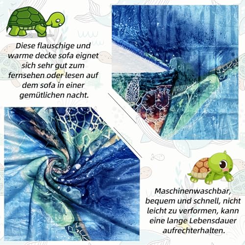 WEUCH & WARM: Die Schildkröte kuscheldecke decke warm aus Flanell besteht aus hochwertigem Material. Die kuscheldecke flauschige Wurfdecke ist super weich, strapazierfähig, warm, leicht, farbecht, reißfest und geruchstral.
