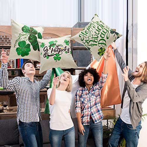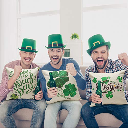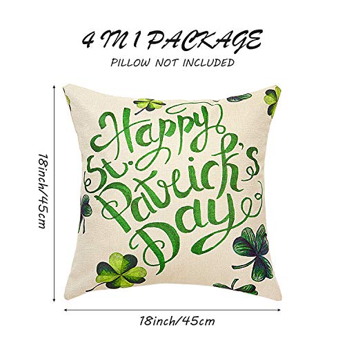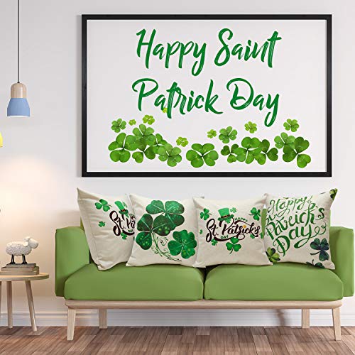 4 Stile: Sie erhalten 1 Stück großer grüner Kleeblatt-Kissenbezug, 1 Stück Happy St Patrick’s Day mit einem Zylinder-Kissenbezug, 1 Stück grüne Kleeblätter mit verschiedenen Größen und 1 Stück Happy Saint Patrick’s Day Kissenbezug, tolle Ergänzung für St. Patrick’s Day Dekor