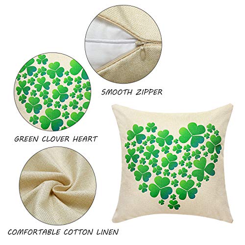 Boao 4 Stück St Patrick’s Day Kissenbezug 18 x 18 Zoll Herz Grün Kleeblatt Kissenbezüge Klee Glücklich Dekokissen Fall Kissen Fröhlichen St. Patrick’s Day Dekorationen für Sofa Couch Auto Haus Dekor