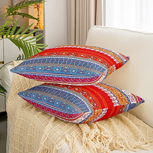 Bohemian Floral Kopfkissenbezüge 50×50 Hippie Boho Chic Kissenbezüge for Mädchen Frauen Bunte Indianische Ureinwohnerstämme Kissenbezüge Western Rustic Dekorative Kissenbezüge Soft Bedroom Decor