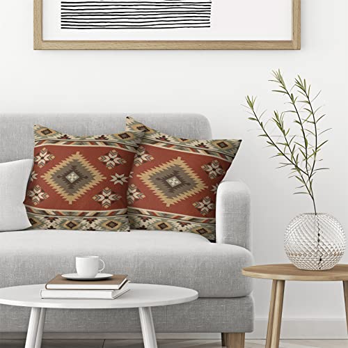 Boho-Kissenbezüge: Unsere aztekischen Kissenbezüge sind 50,8 x 50,8 cm aus hervorragendem atmungsaktivem Polyester-Leinen-Stoff. Die westlichen dekorativen Kissenbezüge sind langlebig, weich und hautfreundlich. Die roten Outdoor-Kissenbezüge verfügen über eine exquisite Einfassungstechnologie und vier Seiten unserer roten und braunen Kissenbezüge sind fest vernäht, wodurch die Linie nicht leicht geöffnet werden kann.