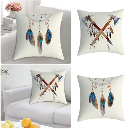 Boho-Kissenbezüge, 45,7 x 45,7 cm, Traumfänger, Aztekenmuster, indische Bettwäsche, Baumwolldekor, moderne Überwurfkissen, Outdoor, Bauernhaus, Terrasse, Zuhause, Sofa, Couch, Urlaub, Dekorationen