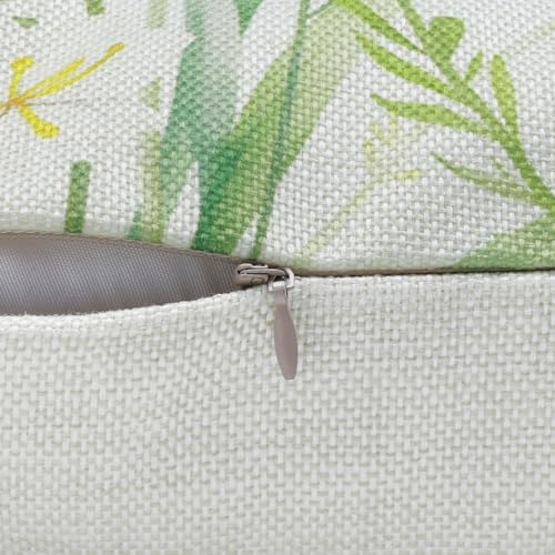 Bonhause 4er Set Kissenbezüge Frühling Blumen 45 x 45 cm Blume Gelbe Weiße Grüne Blätter Dekorative Kissenhülle Zierkissenbezüge für Sofa Zuhause Garten Outdoor Frühling Dekoration