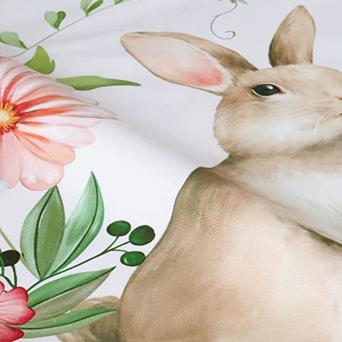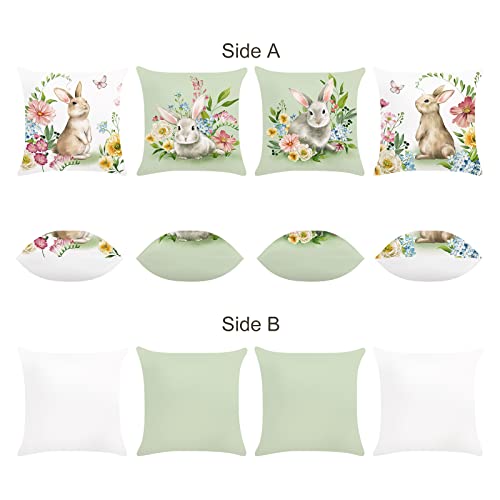 Bonhause 4er Set Kissenbezüge Frühlings Hase 45 x 45 cm Kaninchen Blumen Dekorative Kissenhülle Grün Zierkissenbezüge für Sofa Schlafzimmer Wohnzimmer Garten Zuhause Dekoration