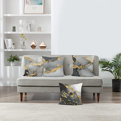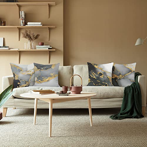 Marmor Design: Werten Sie Ihre Wohnkultur mit diesen luxuriösen Kissenbezügen mit einem modernen abstrakten Design auf, das Marmor, Grau, Schwarz und Goldtöne mischt.