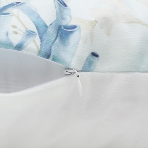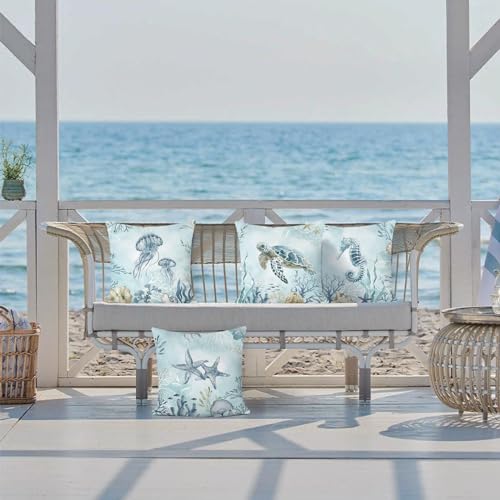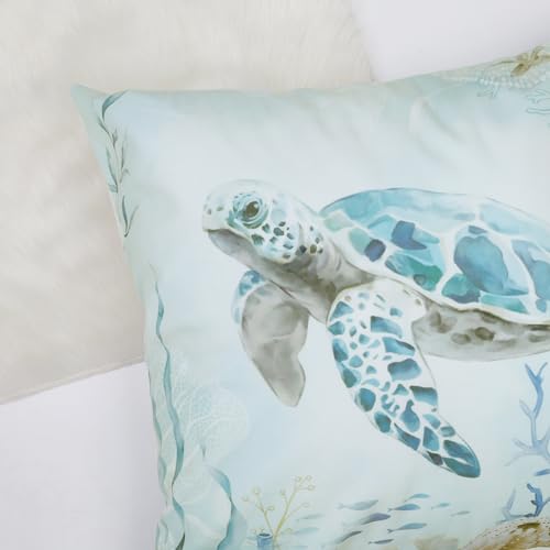 Design zum Thema Ozean: Abtransportieren Sie sich die ruhige Schönheit des sommerlichen Ozeans in Ihr Zuhause mit unseren ozeanblauen Kissenbezügen mit Meeresschildkröten-, Seepferdchen-, Seestern-, Quallen- und Korallenmotiven.