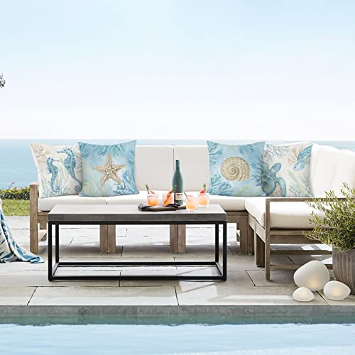 Bonhause 4er Set Kissenbezüge Ozean Strand 45 x 45 cm Seepferdchen Schildkröte Seestern Küsten Outdoor Samt Soft Dekorative Kissenhülle Zierkissenbezüge für Sofa Wohnzimmer Zuhause Dekoration