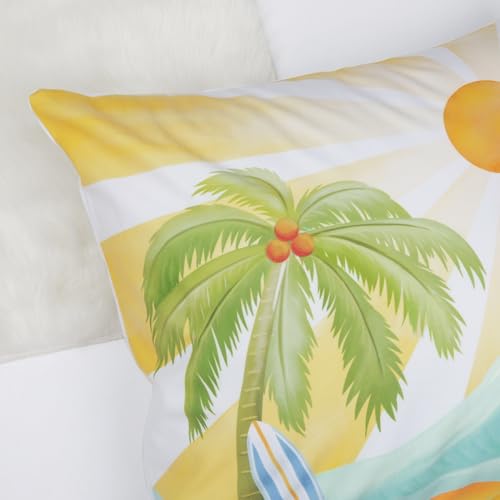 Design am Meer: Diese sommerlichen Kissenbezüge sind perfekt, um Ihrem Wohnzimmer, Schlafzimmer oder Ihrer Terrasse einen Hauch von Meer zu verleihen, und verfügen über eine wunderschöne Palette von Gelb und Betrunken, um Sonne, Meer, Strand, verspieltes Surfbrett und Palmendesign zu wiedergeben, das Sie im Handumdrehen an den Strand bringt.