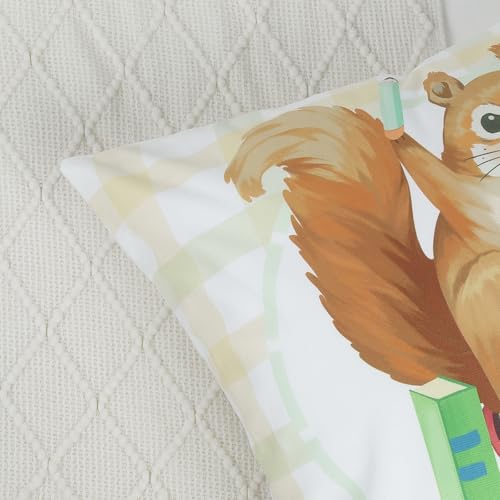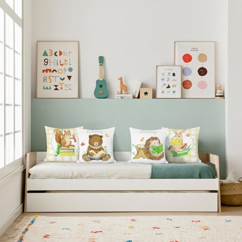 Bonhause 4er Set Kissenbezüge Tiere 45 x 45 cm Bär Eichhörnchen Hase Igel Lesebücher Dekorative Kissenhülle Zierkissenbezüge für Sofa Wohnzimmer Zuhause Kinderzimmer Dekoration