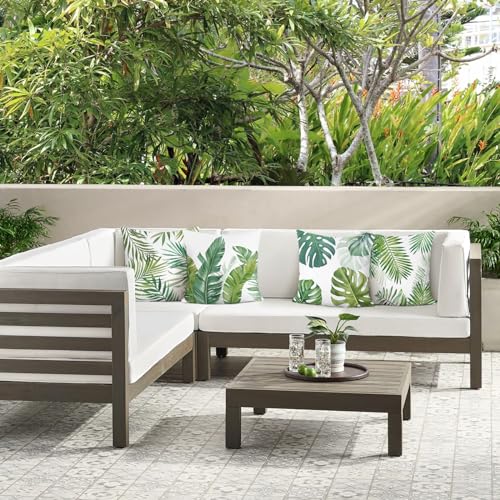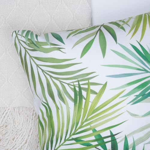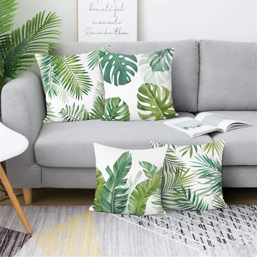Bonhause 4er Set Kissenbezüge Tropische Blätter 45 x 45 cm Grün Palm Blätter Samt Soft Dekorative Kissenhülle Zierkissenbezüge für Sofa Zuhause Garten Sommer Frühlings Dekoration