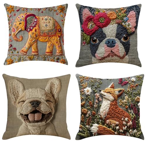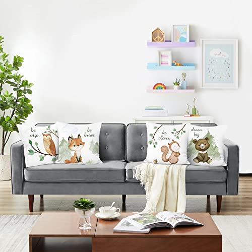 Bonhause 4er Set Kissenbezüge Waldtiere 45 x 45 cm Fuchs Bär Eichhörnchen Eule Dekorative Kissenhülle Zierkissenbezüge für Kinder Babyzimmer Dekoration