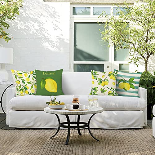 Bonhause 4er Set Kissenbezüge Zitrone 45 x 45 cm Gelbe Obst mit Grüne Blätter Polyester Leinen Dekorative Kissenhülle Zierkissenbezüge für Sofa Schlafzimmer Wohnzimmer Auto Zuhause Dekoration