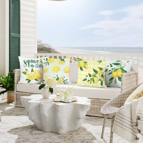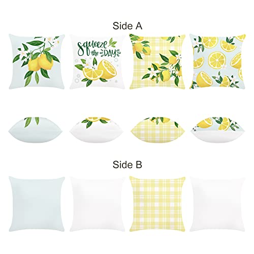 Zweiseitiges Design: Das Kissenbezug muster des zitrone ist beidseitig bedruckt (die Abseite des Kissenbezug weist weiße, hellblaue und gelbes Karomuster), eignet sich perfekt für die Dekoration Sofa, Bank, Stuhl, Büro, Couch oder Schlafzimmer, Wohnzimmer, Auto und Wohnkultur.