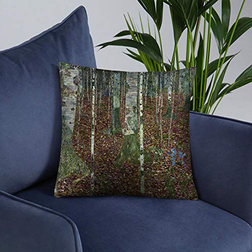 BONNIU Dekorativer Kissenbezug mit Reißverschluss 40X40 cm Samt Kissenschutzbezug Landschaft Kunst – Klimt – Buchenwald GK033