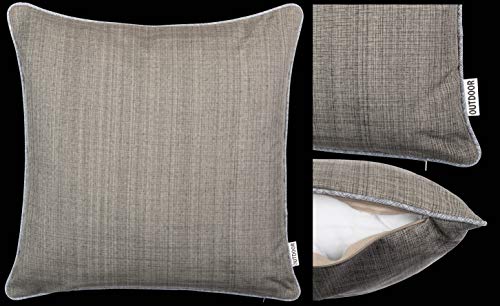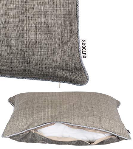 Brandsseller 2er Set Outdoor Kissen 45×45 cm – Wetterfeste Zierkissen mit Paspel in Leinenoptik – Wasserabweisende Gartenkissen & Dekokissen für draußen – Sofakissen für Balkon & Terrasse – Taupe