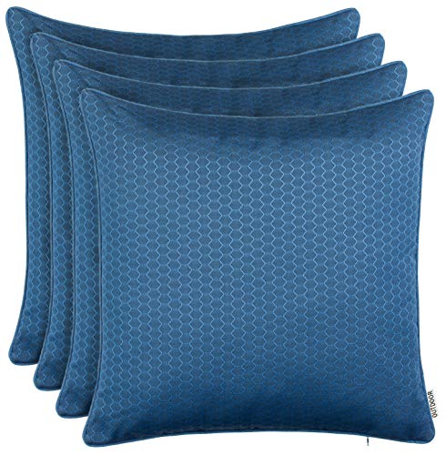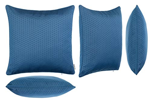 Brandsseller 4er Set Outdoor Kissenbezüge 45×45 cm – Wetterfeste Zierkissenbezüge in Wabenstruktur – Wasserabweisende Dekokissenbezüge mit Reißverschluss für Garten, Balkon & Terrasse – Blau
