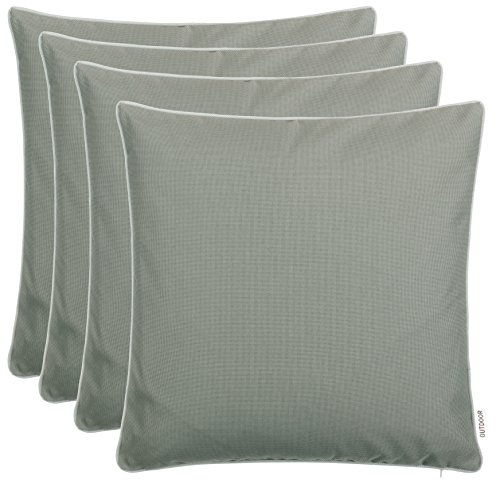 Brandsseller 4er Set Outdoor Kissenbezüge 45×45 cm – Wetterfeste Zierkissenbezüge mit Paspel – Wasserabweisende Dekokissenbezüge mit Reißverschluss für Garten, Balkon & Terrasse – Beige