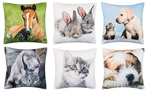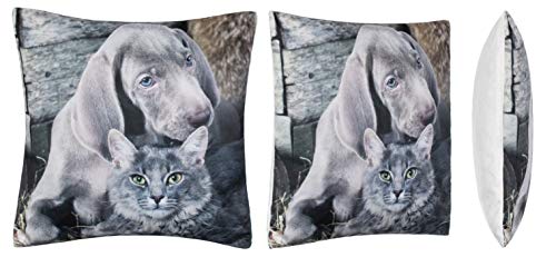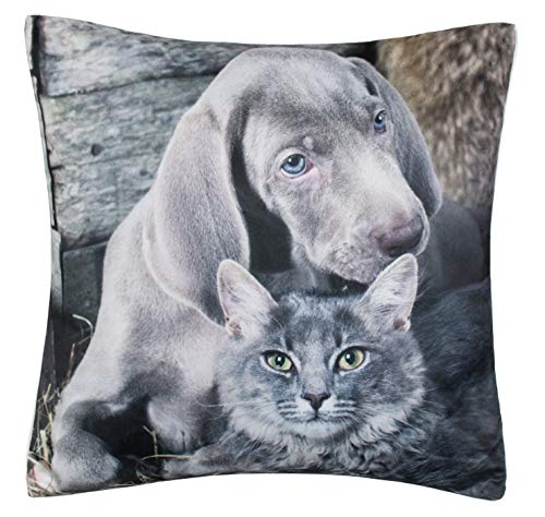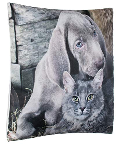 Brandsseller Dekokissen Zierkissen mit Tiermotiv – 40 x 40 cm – Dogge Welpe und Katze