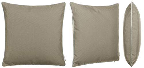 Ob auf Gartenstühlen, der Lounge oder dem Sofa – die ca. 45×45 cm großen Dekokissen in elegantem Stil verschönern jeden Wohn- und Außenbereich. Der strapazierfähige Polyesterbezug mit Lotus-Effekt ist wasser- und schmutzabweisend – perfekt für Balkon, Garten, Terrasse oder Pool.