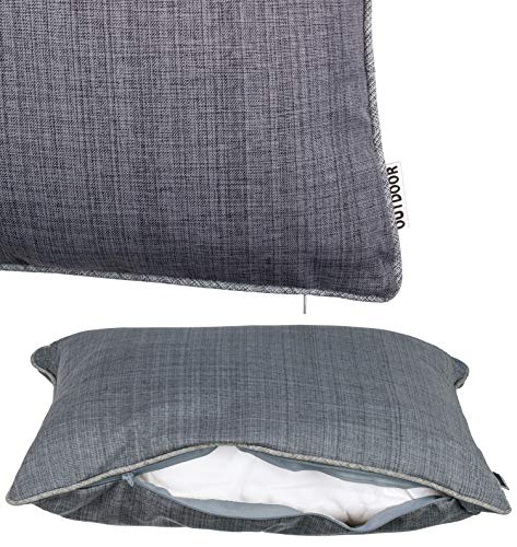 STILVOLLES DESIGN FÜR DRINNEN & DRAUSSEN – Mit ihrer edlen Paspel und dem zeitlosen Unidesign in Anthrazit setzen die Zierkissen stilvolle Akzente auf Balkon, Terrasse, Gartenmöbeln oder im Wohnzimmer.
