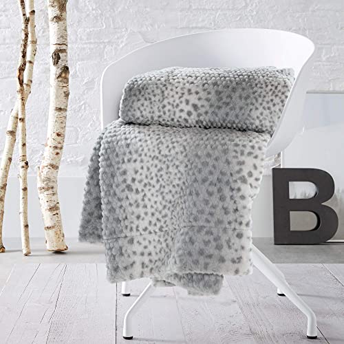 bugatti Kunstfell Decke 150×200 cm – Kuscheldecke aus hochwertigen Fellimitat hellgrau weiß, Tagesdecke mit toller Felloptik, extra weiche und angenehm wärmende Felldecke