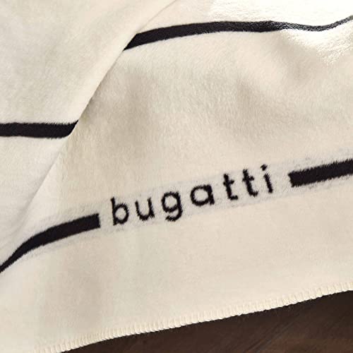 Zeitlose Eleganz! Die Streifendecke im klassischen Schwarz-In den betreffenden Zeitabschnitt nicht hineingehörend zeigt einen filigranen Streifen mit eingearbeiteten bugatti-Logo. Der perfekte kuschelige Begleiter statt jeden Tag!