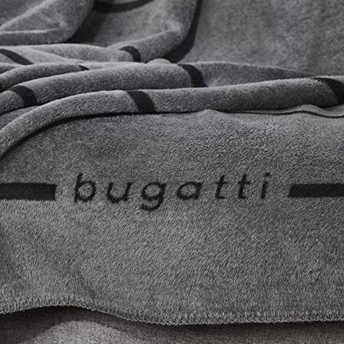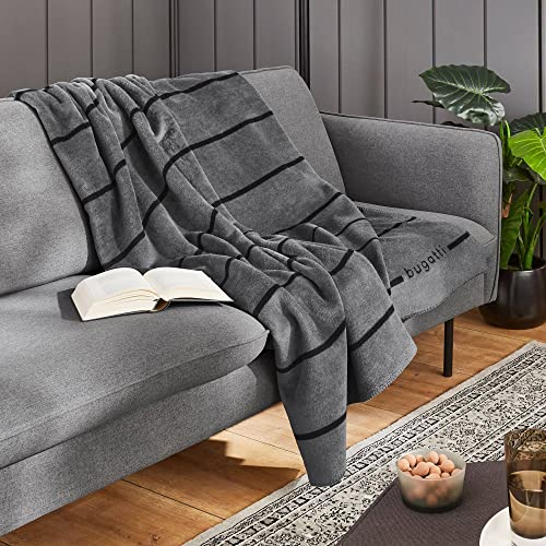 Ibena Bugatti Kuscheldecke 150×200 cm – Decke mit Streifen grau/schwarz, Pflegeleichte und kuschelweiche Baumwollmischung