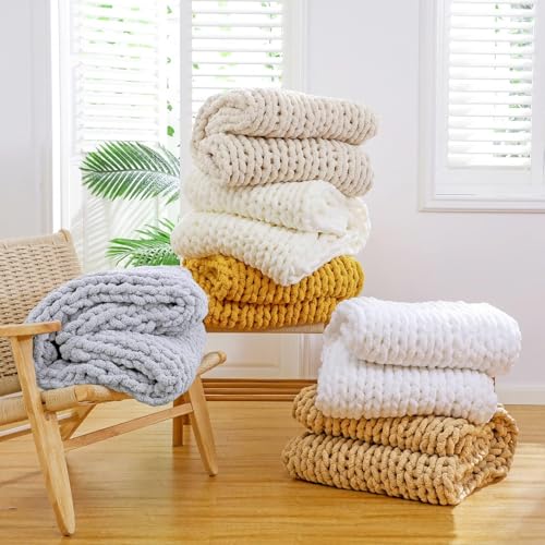 FÜR ALLE JAHRESZEITEN: Diese Chenille-Strickdecke ist ein Stoff, der sich durch seine flauschigen Florfasern auszeichnet und für seine Stärke und Haltbarkeit bekannt ist; Unsere leichte und bequeme grobstrick decke hält Sie das ganze Jahr über an kühlen Tagen warm und gemütlich, wenn Sie sie umwickeln.