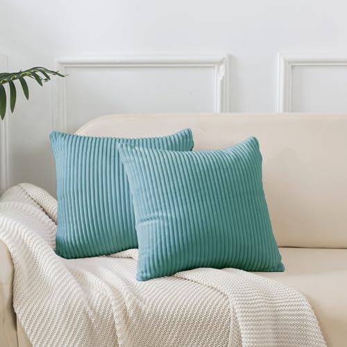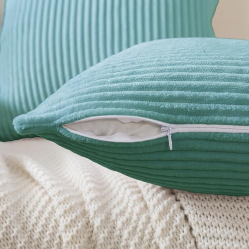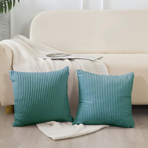 Caregchrisj Kissenbezug 40×40 2er Set Kordsamt Kissenbezug Grün gestreiftes Muster Kissenbezüge gelten für Wohnzimmer,Sofa,Schlafzimmer,Balkon,Kinder,Deko Kissenhülle mit Verstecktem Reißverschluss
