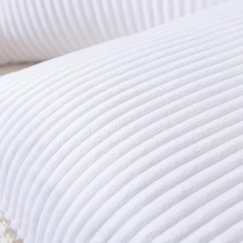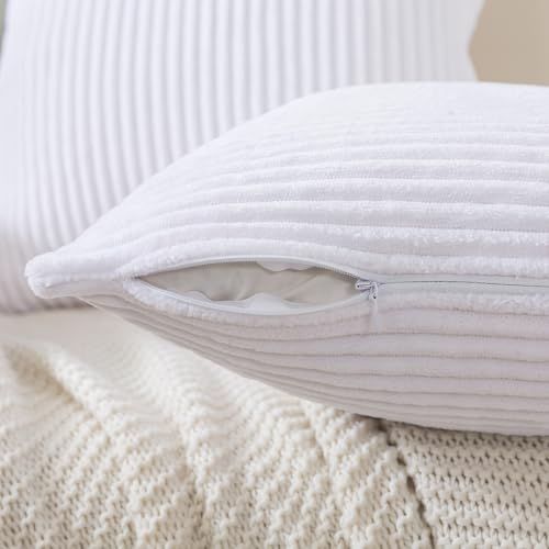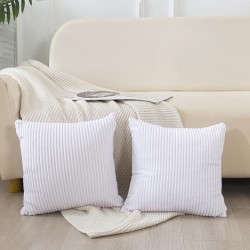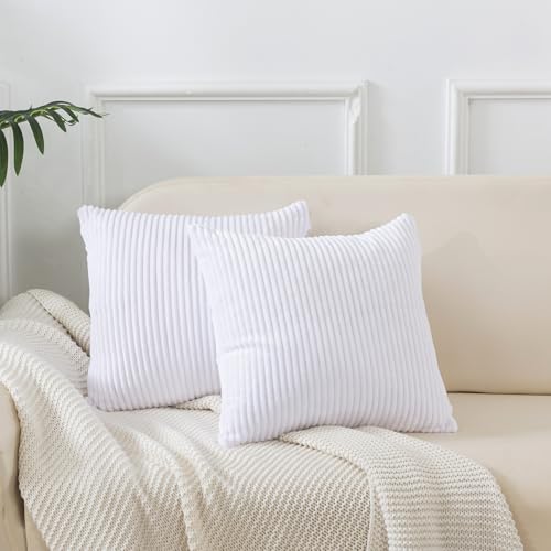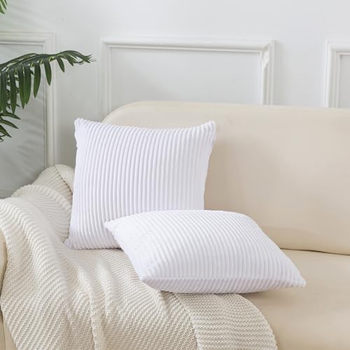 Caregchrisj Kissenbezug 40×40 2er Set Kordsamt Kissenbezug Weiß gestreiftes Muster Kissenbezüge gelten für Wohnzimmer,Sofa,Schlafzimmer,Balkon,Kinder,Deko Kissenhülle mit Verstecktem Reißverschluss