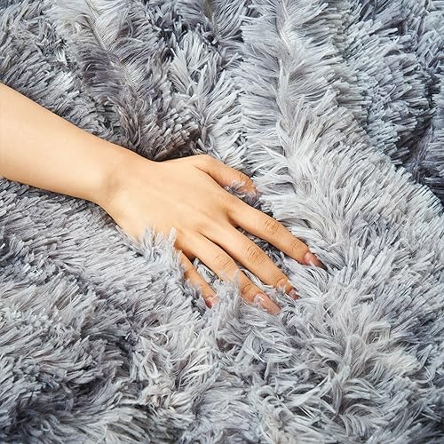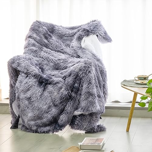 Caregchrisj Kunstfelldecke –Grauweiß Sherpa Schafdecke – Comfort Luxuriöse Flauschige Kuscheldecke – weiche Decke für Couch und Bett-M160cmX200cm