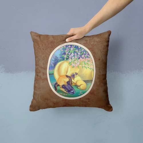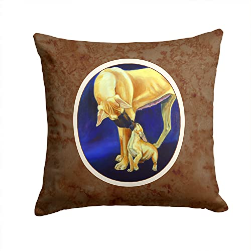 Bringen Sie Farbe in Ihre einfarbigen Outdoor-Terrassenmöbel oder Ihren Sitzbereich im Freien mit unseren farbigen Kunstwerk-Kissen. Ca. 35,6 x 35,6 cm, gemessen von der Ecke des Kissens. Kissenbezug jedweder 100 % Polyester mit Kissenform. This pillow is made from Caroline’s Treasures new material that is woven to be water resistant. Dieser weiche Canvas-Stoff kann innen auf der Couch oder draußen auf der Terrasse, Veranda oder Veranda verwendet werden. Wir färben den Stoff mit Farbstoffen, die farbecht sind und für das Wetter gebaut sind. Der Stoff ist schimmelresistent, schmutzabweisend, farbbeständig und maschinenwaschbar. Drei Stoffstücke werden zu einem Kissenbezug zusammengenäht, und dann wird ein Polyestereinsatz in den Kissenbezug gelegt, um das Kissen zu bilden. Das Kissen ist überfüllt und behält seine Form. Sowohl der Kissenbezug wie bekannt als der Kisseneinsatz werden in den USA hergestellt. Die Kissen sind jedweder handgefertigt und können in der Größe leicht differieren.