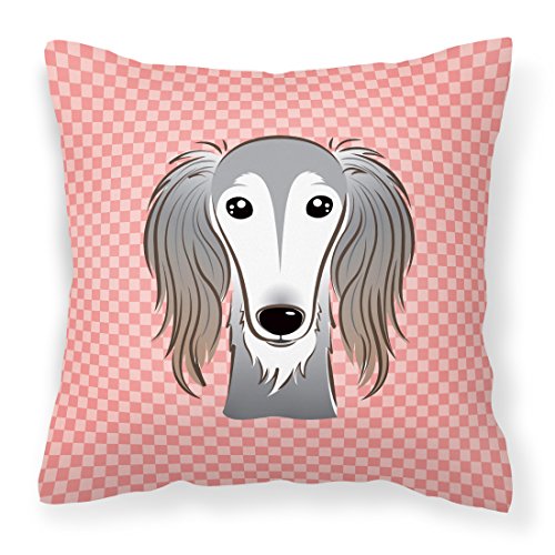 Carolines Treasures BB1229PW1818 Dekokissen mit Schachbrettmuster, Pink Saluki, Leinen, 45,7 x 45,7 cm, Mehrfarbig