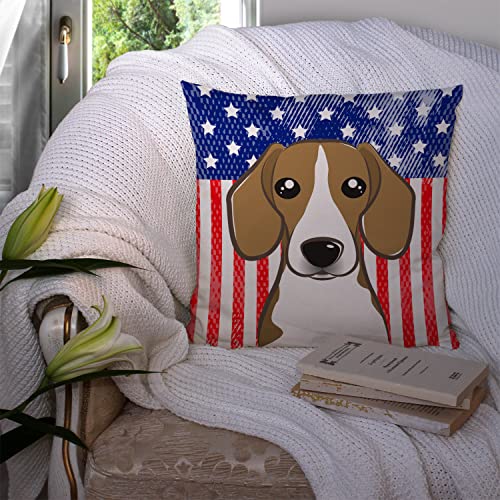 Caroline’s Treasures BB2169PW1414 Dekokissen, Motiv amerikanische Flagge und Beagle, 14 x 14 W, Mehrfarbig