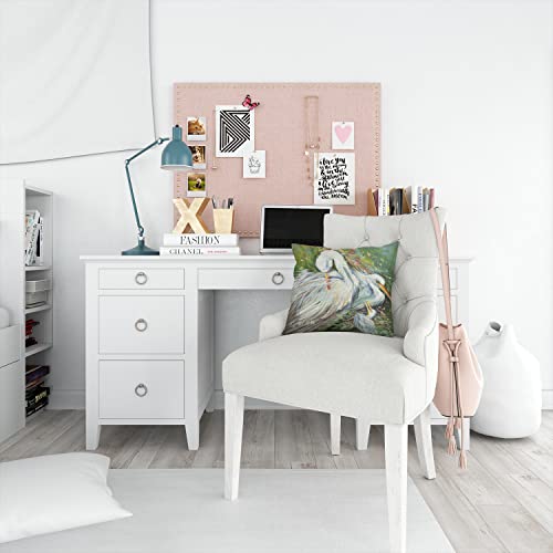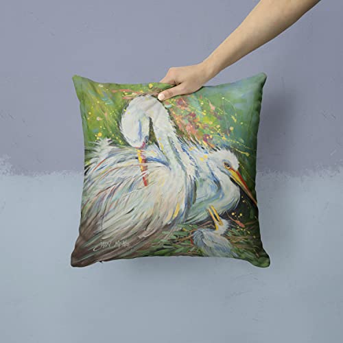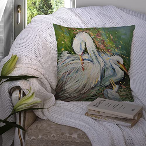 Caroline’s Treasures JMK1210PW1414 Deko-Kissen, Motiv Egret in The Rain, Leinenstoff, groß, Mehrfarbig