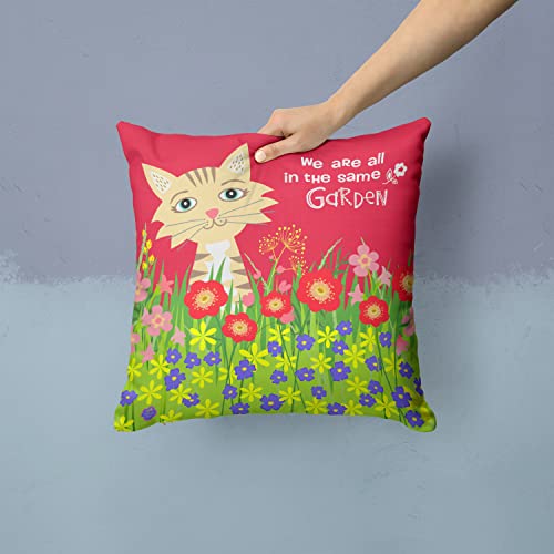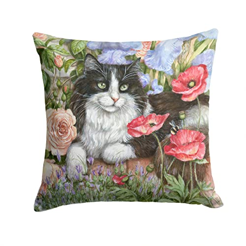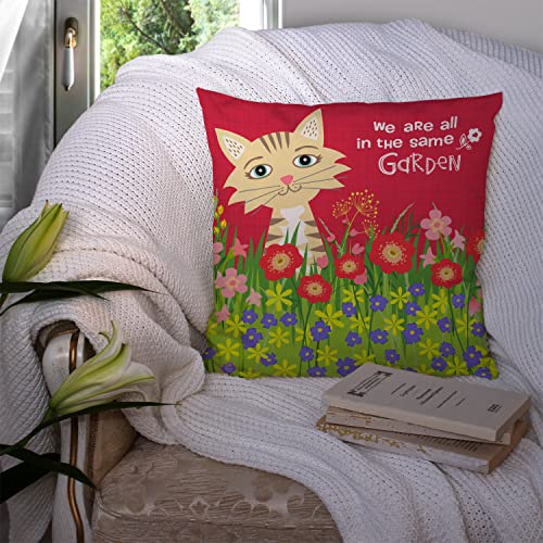 Carolines Treasures VHA3009PW1414 Dekokissen aus Leinen, Motiv Gartenkatze, 35,6 x 35,6 cm, Mehrfarbig