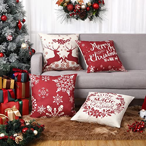 🎄Schönes Design: 4er-Gesindel verschiedene klassische Weihnachtsdesigns, schönes Muster und unsichtbares Reißverschlussdesign, wodurch es schöner und dekorativer aussieht. Der Beule auf dem Kissenbezug ist sehr klar und in Betrieb. Die Farben sind sehr satt und in Betrieb. Unsere zarten Kissenbezüge bringen Frische und Vitalität in Ihr gemütliches Zuhause und abschaffen die Eindrücke Ihrer Gäste.
