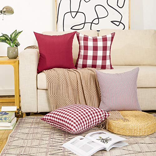★ Weinrot Burgunderrot ★ Sie sind keine weihnachtlichen roten Kissenbezüge, eher wie dunklere Cranberry-Farbe. Set mit 4 burgunderroten Kissenbezügen, 50,8 x 50,8 cm für Couch. Kein Einsatz oder Füllstoff im Lieferumfang enthalten.