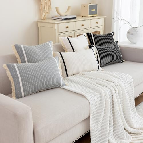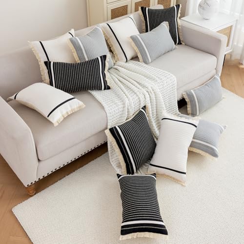 Keine Kisseneinsätze: Das Paket enthält andererseits schwarz gestreifte dekorative 45,7 x 45,7 cm große Kissenbezüge. 1 Fetzen. Es ist keine Kisseneinlage im Lieferumfang enthalten. Sie sind die perfekte Dekoration für Wohnzimmer, Schlafzimmer, Terrassenmöbel, Veranda-Schaukel, Balkon, Büro und Außendekoration.