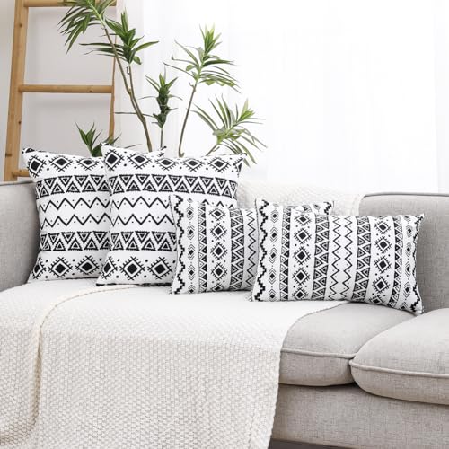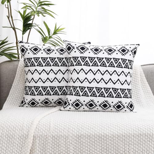 Ästhetische Boho-Raumdekoration: Scheitern Sie Ihr altes Kissen, ohne Ihre Kisseneinlage wegzuwerfen. Sie können Ihre Heimdekoration schnell auffrischen, indem Sie das schwarze Boho-Kissenbezug-Set von CARRIE HOME kaufen.