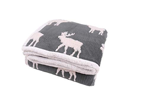 CB Home % Style Wohndecke Hirsch Jacquard Sherpa Fell 150 x 200 cm Decke (Grau)