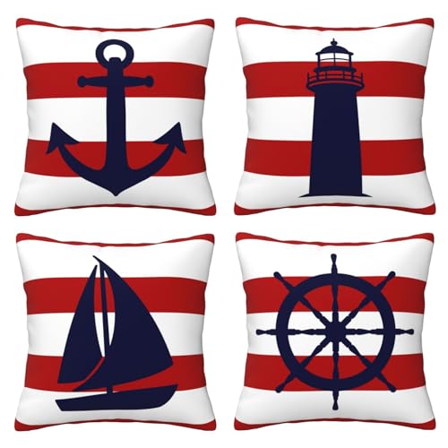 Exquisites Design: Die Kissenbezüge haben beide Seiten gleichfarbiges Druckdesign mit klaren Mustern. Die nautischen Kissenbezüge haben völlig unsichtbare und glatte Reißverschlüsse, wodurch sie einfach zu montieren und zu auswechseln sind